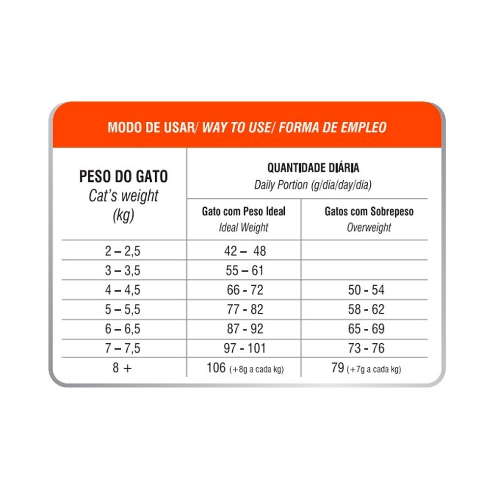Biofresh®Gatos Castrados - SEM CONSERVANTES, AROMAS E CORANTES ARTIFICIAIS - TRATO URINÁRIO SAUDÁVEL - AJUDA A PRESERVAR O PESO IDEAL - DESENVOLVIDO PARA CARNÍVOROS - PELAGEM MACIA E BRILHOSA - FEZES FIRMES E DE ODOR REDUZIDO - SAÚDE ORAL FAVORECIDA Composição: Seleção de carnes frescas (carne de peixes, carne mecanicamente separada de salmão, carne de frango (peito), fígado de aves e carne mecanicamente separada de frango) (mín. 20%), seleção de frutas, vegetais e ervas frescas (maçã, cenoura, beterraba e orégano) (mín. 2%), óleo de peixes (fontes naturais de EPA e DHA), farinha de torresmo, farinha de vísceras de aves e óleo de aves (preservados naturalmente com tocoferóis), ovo em pó, extrato de mirtilo (blueberry), extrato de yucca e extrato de chá verde, farinha de mandioca, polpa desidratada de beterraba, celulose em pó, hidrolisado de fígado de aves e suínos, ervilha desidratada, levedura de cerveja inativada desidratada, parede celular de levedura (fonte de mananoligossacarídeos), inulina (mín. 0,02%), hexametafosfato de sódio, L-carnitina, taurina, DL-metionina, L-lisina, cloreto de potássio, cloreto de sódio (sal comum), cloreto de colina, ácido fosfórico, vitaminas (A, B1, B2, B6, B12, C, D3, E, K3, ácido fólico, ácido pantotênico, biotina e niacina) e minerais aminoácidos-quelatados (cobre, ferro, manganês, zinco e selênio), iodato de cálcio e antioxidantes naturais (tocoferóis, extrato de alecrim e ácido cítrico).