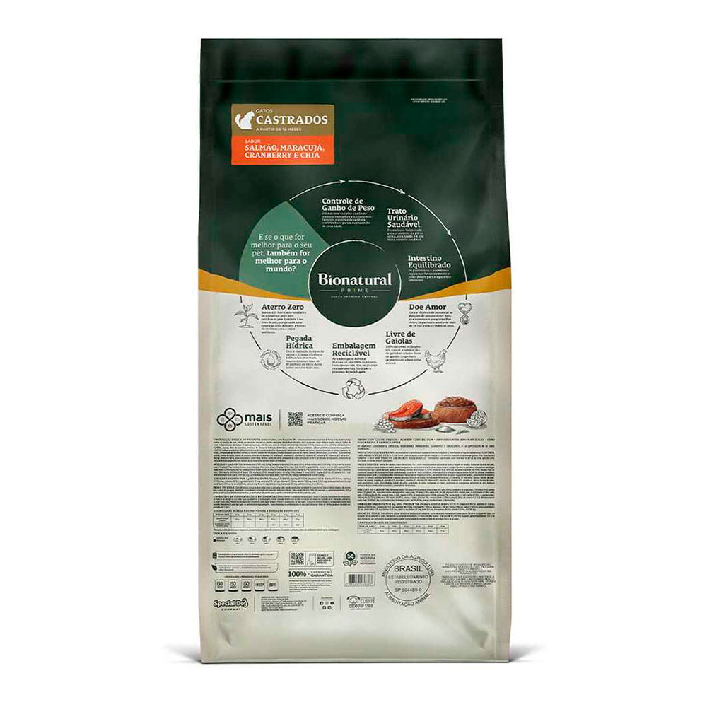 Ração Bionatural Prime Para Gatos Adultos Castrados Sabor Salmão 7,5kg