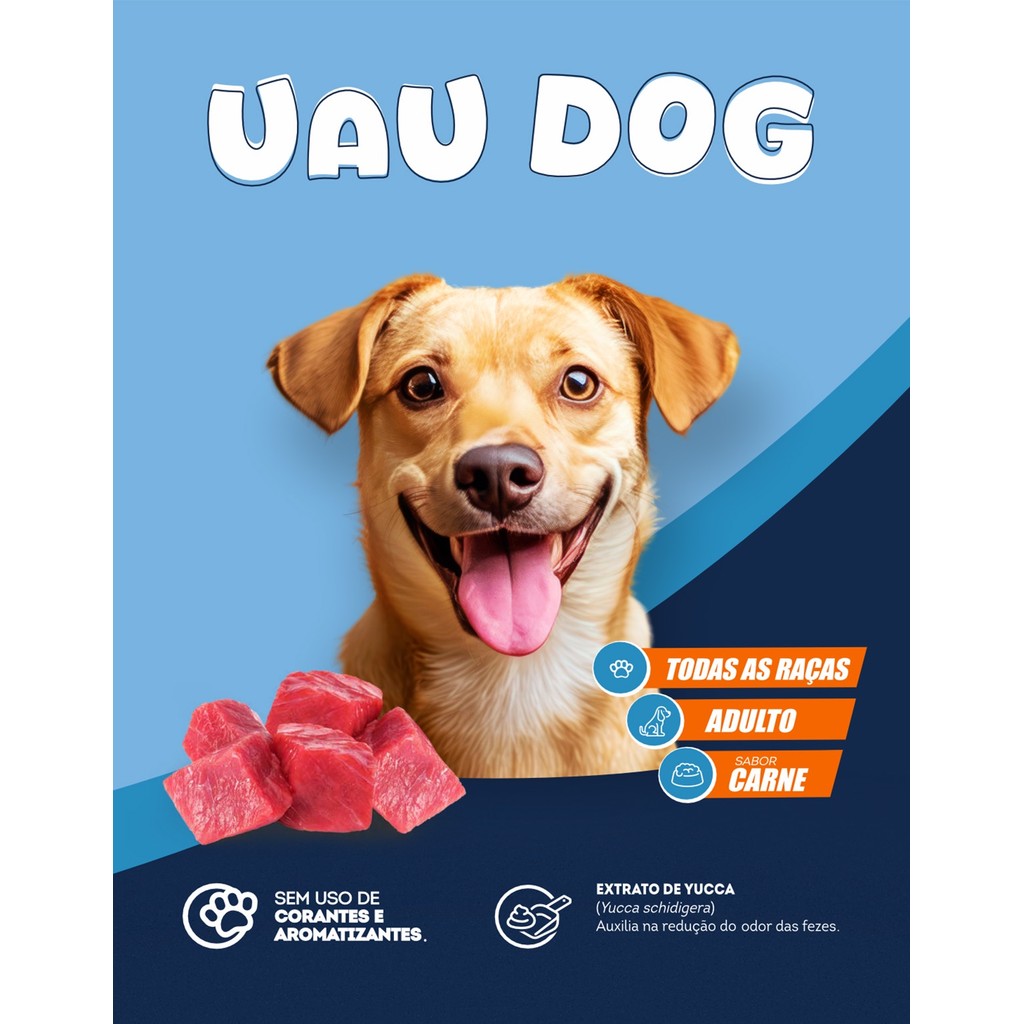 Ração Cachorro Uau Dog Adulto Carne 15kg Cães Todas Raças Sem Corante Yucca Vitalidade