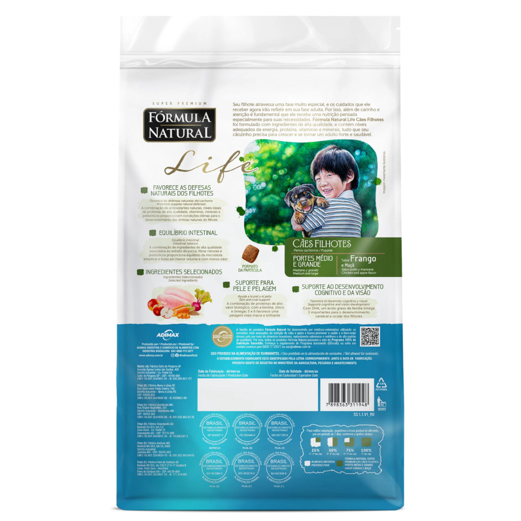Ração Fórmula Natural Life Cães Filhotes 2,5kg Porte Médio e Grande Sabor Frango e Maçã