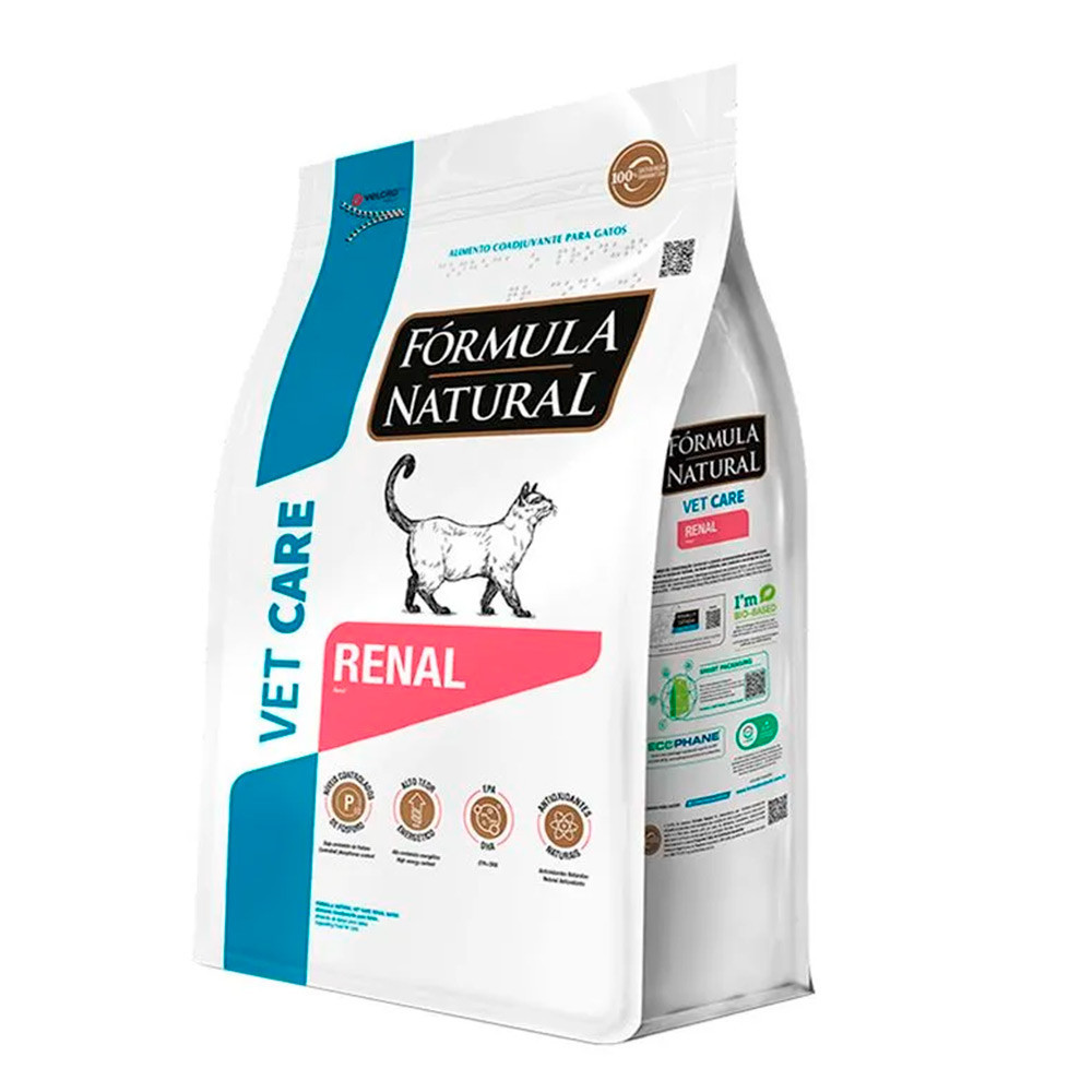 Ração Fórmula Natural Vet Care Renal Para Gatos Adultos 1,5kg - Indicado para gatos; - Para gatos adultos com doença renal crônica;- Colabora na diminuição da progressão da doença renal crônica;- Níveis controlados de fósforo;- Possui EPA e DHA;- Com antioxidantes naturais. Fórmula Natural Vet Care Gatos Renal foi especialmente desenvolvida como coadjuvante para desacelerar a progressão da doença renal crônica e aprimorar a qualidade de vida de gatos que sofrem com essa condição.A Fórmula Natural Vet Care Renal não possui transgênicos nem cereais em sua composição. Ela contribui para a preservação da função renal por meio de altos níveis de EPA+DHA, reduz a perda de massa muscular e minimiza os efeitos da síndrome urêmica no sistema gastrointestinal.Ajuda combater os radicais livres, promove a ingestão adequada de calorias devido ao seu alto teor energético e proporciona sabor irresistível e digestibilidade para os felinos. Vale ressaltar que este produto não substitui o tratamento convencional. Portanto, é crucial que um médico-veterinário avalie o animal para garantir a correta continuidade do tratamento. Ingredientes Carne mecanicamente separada de frango, fígado de frango, quirera de arroz, farinha de vísceras de aves, glúten de trigo, proteína hidrolisada de frango, levedura de cana-de-açúcar inativada e desidratada, polpa desidratada de beterraba, farinha de linhaça, óleo de aves, óleo de salmão, óleo de linhaça, hidrolisado de fígado de aves e miúdos suínos, biomassa de microalgas (Schizochytrium sp.), zeólita, parede celular de levedura, frutooligossacarídeos, inulina, probiótico, extrato de yucca, vitaminas, minerais, carbonato de cálcio, taurina, metionina, triptofano, treonina, leucina, valina, isoleucina, extrato de chá verde, extrato de alecrim, cúrcuma, concentrado de tocoferóis (antioxidante natural) (0,01%).