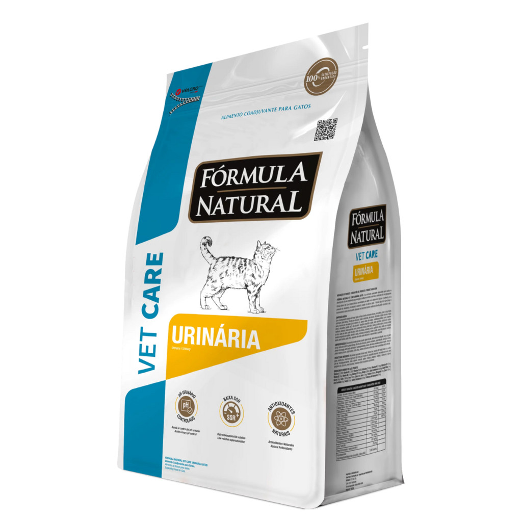 Ração Fórmula Natural Vet Care Urinária 7 kg para Gatos Ração Fórmula Natural Vet Care Urinária Gatos: Desenvolvida para dissolver cálculos de estruvita e prevenir a formação de novos. Controle do pH urinário: Ajuda a evitar a formação de cristais e pedras no trato urinário dos gatos. Baixa Saturação Relativa (SSR): Reduz a concentração de minerais na urina, prevenindo a cristalização e formação de cálculos. Antioxidantes naturais: Chá verde e alecrim protegem o sistema imunológico e promovem a saúde dos rins. Composição balanceada: Rica em proteínas de frango, biomassa de microalgas e extratos vegetais, oferece uma alimentação saudável. Função preventiva e terapêutica: Trata problemas urinários e previne novas ocorrências, promovendo a saúde geral dos gatos a longo prazo. A Ração Fórmula Natural Vet Care Urinária Gatos foi desenvolvida com foco em auxiliar no tratamento de problemas urinários em gatos adultos. Este alimento coadjuvante tem como objetivo principal a dissolução de cálculos de estruvita e a prevenção de urólitos de estruvita e oxalato de cálcio, condições bastante comuns entre os felinos. Através de uma combinação precisa de ingredientes, esta ração é uma excelente aliada para melhorar a qualidade de vida dos gatos que sofrem com doenças urinárias. A Importância do pH Urinário Controlado A saúde urinária dos gatos depende diretamente do controle do pH da urina. Um dos grandes benefícios da Fórmula Natural Vet Care Urinária Gatos é sua capacidade de manter o pH urinário em níveis adequados, o que impede a formação de novos cálculos e ajuda na dissolução dos existentes. A composição balanceada da ração garante que o ambiente urinário dos felinos se mantenha menos propenso ao desenvolvimento de cristais, protegendo-os contra recorrências dessas condições. Baixa Saturação Relativa (SSR) Outro ponto de destaque é a baixa Saturação Relativa (SSR) da urina, promovida pelo consumo regular da Fórmula Natural Vet Care Urinária Gatos. A SSR refere-se à concentração de minerais dissolvidos na urina. Quando a SSR é alta, há maior chance de os minerais se agruparem e formarem cristais, o que pode evoluir para cálculos. Mantendo a SSR em níveis adequados, essa ração reduz significativamente as chances de formação de novos cálculos, oferecendo uma prevenção ativa e contínua. Antioxidantes Naturais para uma Saúde Otimizada A Fórmula Natural Vet Care Urinária Gatos também é enriquecida com antioxidantes naturais, como o extrato de chá verde e alecrim, que atuam para fortalecer o sistema imunológico do gato. Esses compostos ajudam a combater os radicais livres, prevenindo o estresse oxidativo, que pode impactar negativamente a saúde geral do felino. Além disso, os antioxidantes desempenham um papel importante na proteção das células renais, ajudando a preservar o bom funcionamento do trato urinário e dos rins. Prevenção e Tratamento Combinados A Fórmula Natural Vet Care Urinária Gatos se destaca por sua dupla função: além de auxiliar na dissolução de cálculos urinários, ela atua ativamente na prevenção de novas formações. Isso é possível graças ao equilíbrio entre seus ingredientes, que promovem um ambiente urinário saudável e menos propenso ao desenvolvimento de cristais. Composição: Carne mecanicamente separada de frango, fígado de frango, farinha de vísceras de aves, arroz quirera, glúten de trigo, farinha de torresmo, farelo de trigo, fibra de cana-de-açúcar, polpa de beterraba, óleo de aves, hidrolisado de fígado de aves e miúdos suínos, biomassa de microalgas (Schizochytrium sp.), parede celular de levedura, frutooligossacarídeos, inulina, vitaminas (retinol, colecalciferol, acetato de d-alfa-tocoferol, menadiona bissulfito de sódio, ácido ascórbico, cloridrato de tiamina, riboflavina, piridoxina, cianocobalamina, biotina, pantotenato de cálcio, ácido fólico, niacina, cloreto de colina), minerais (sulfato de ferro, sulfato de cobre, iodato de cálcio, cloreto de potássio, proteinato de zinco, sulfato de zinco, sulfato de manganês, levedura enriquecida com selênio, selenito de sódio, proteinato de manganês), cloreto de sódio, cloreto de potássio, metionina, taurina, ácido fosfórico, ácido cítrico, extrato de chá verde, extrato de alecrim e concentrado de tocoferóis.