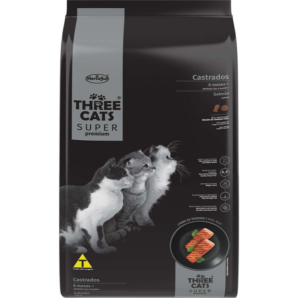 Racao Gatos Three Cats Super Castrados Salmao 3kg