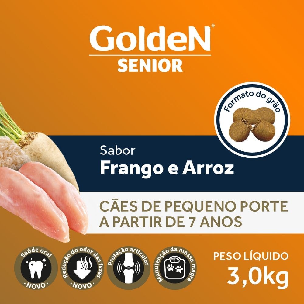 Ração GoldeN Formula Mini Bits Cachorros Raças Pequenas Sênior Frango e Arroz 3,0kg