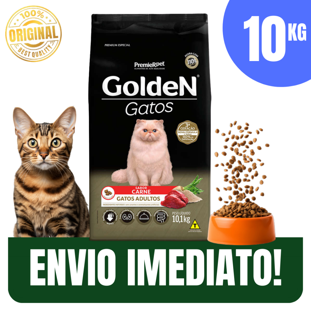 Ração Golden Gatos Adultos Carne 10,1kg Golden com Controle de pH Urinário - Envio Imediato integra a oferta da Shopee Brasil na subcategoria Ração para Gatos (de Animais Domésticos) por R$ 154,99 (23% de desconto sobre o preço original de R$ 201,29). Com avaliação de 5.0 de 5 estrelas, este produto se destaca pelo excelente custo-benefício.