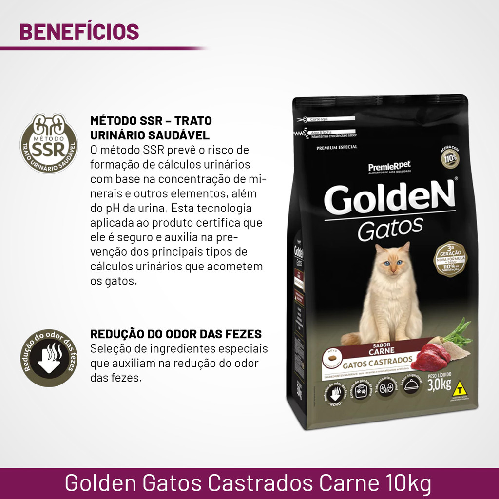Ração Golden Gatos Castrados 10kg Carne