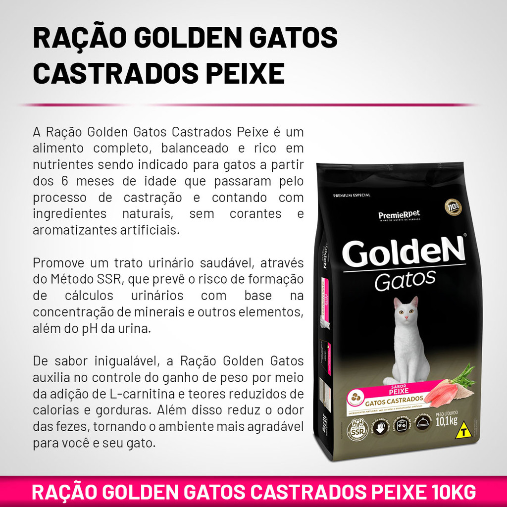 Ração Golden Gatos Castrados Adultos Sabor Peixe 10kg