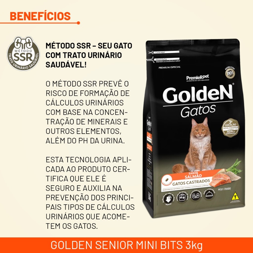 Ração Golden para Gatos Castrados – Sabor Salmão – 10,1kg