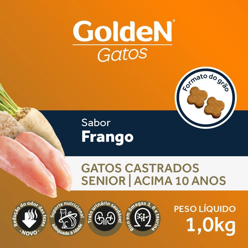 Ração GoldeN Sênior Gatos Castrados Frango 1 kg