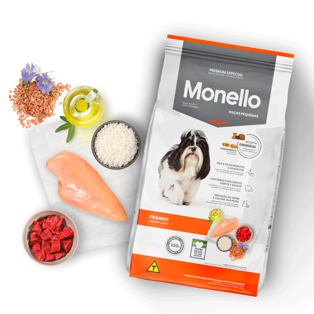 Ração Monello Especial para Cães Adultos Raças Pequenas 7Kg - Indicada para cães adultos; - Melhora a digestão e a absorção de nutrientes; - Suporte completo com vitaminas e minerais essenciais; - Ingredientes de alta qualidade, com proteínas animais e vegetais. A Ração Monello Especial Cães Adultos Raças Pequenas é ideal para suprir as necessidades nutricionais dos cães adultos de raças pequenas. Desenvolvida com ingredientes selecionados, ela oferece uma alimentação Premium que proporciona energia e bem-estar para os pequenos companheiros. Com proteínas de origem animal e vegetal, além de vitaminas e minerais essenciais, esta ração garante uma digestão eficiente e melhor absorção dos nutrientes. A presença de semente de linhaça e azeite de oliva contribui para uma pelagem saudável e bonita, enquanto o aditivo prebiótico auxilia no equilíbrio intestinal. Mantenha seu cachorro pequeno forte, saudável e cheio de energia com a Monello Raças Pequenas!
