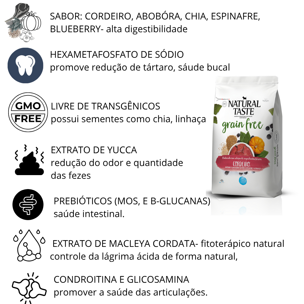 Ração Natural Taste Grain Free 2k Super Premium Cordeiro Livre de Grãos Sem Transgênicos e Corantes