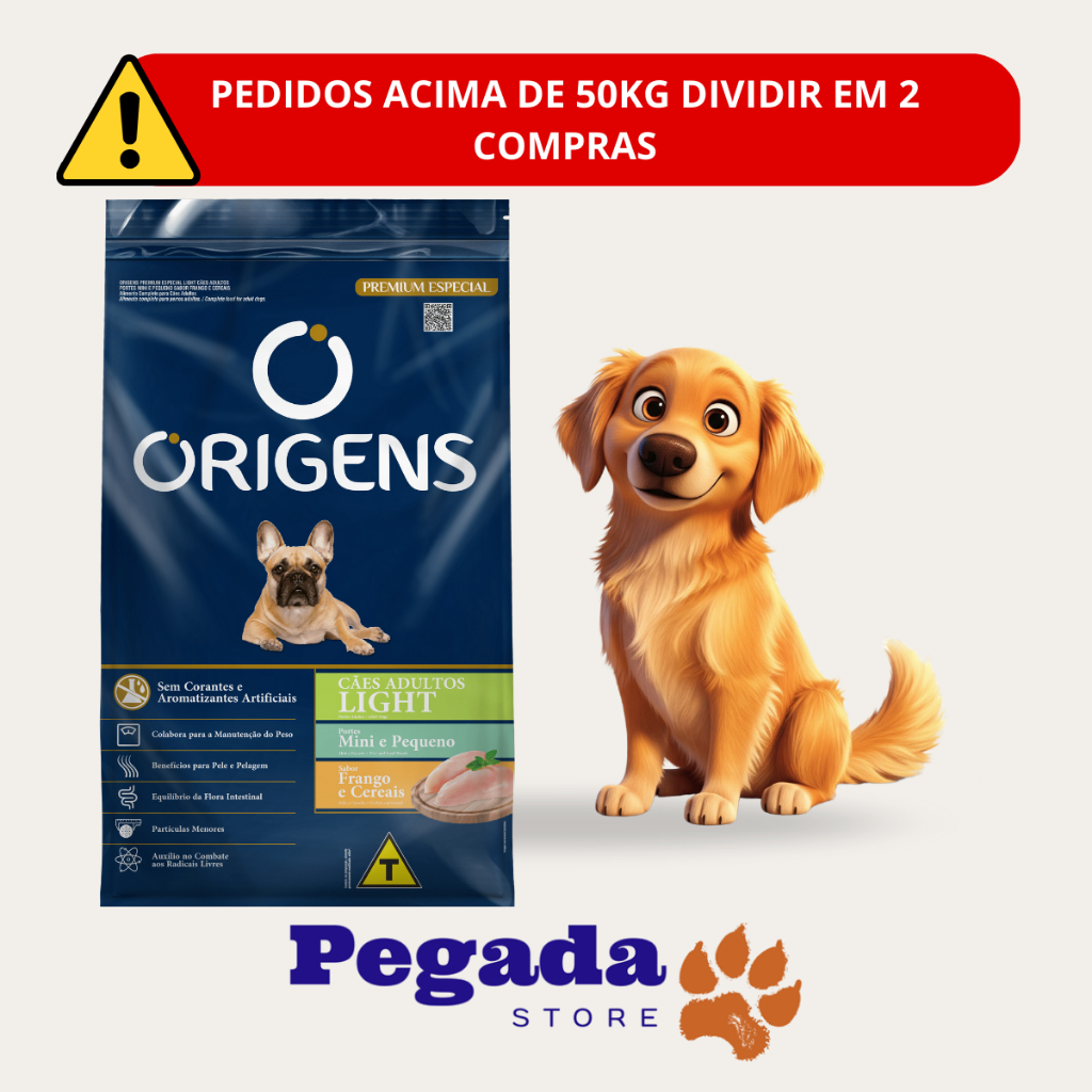 RAÇÃO ORIGENS LIGHT ADULTO RAÇA PEQUENA 10KG