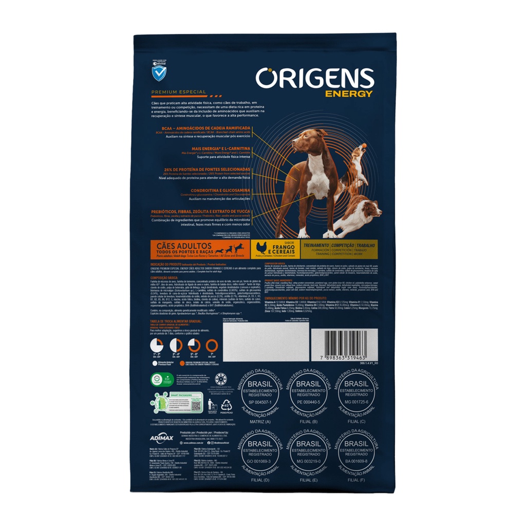 Ração Origens Para Cães Adultos Energy Frango 15Kg