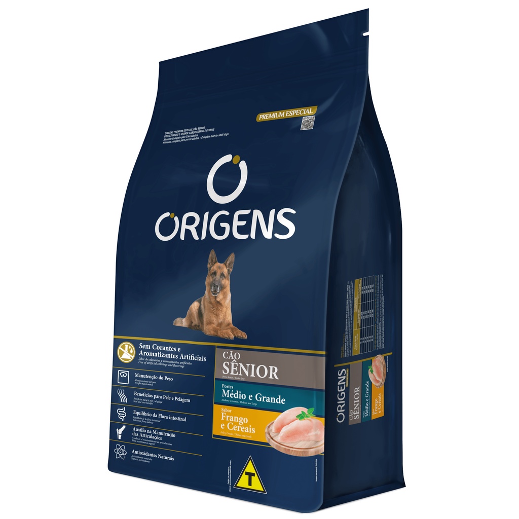 Ração Origens Para Cães Sênior De Porte Médio E Grande Sabor Frango E Cereais Integrais 15kg