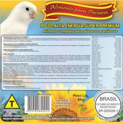 Ração p/ canario Farinhada 5kg Alta Energia Premium OFERTA