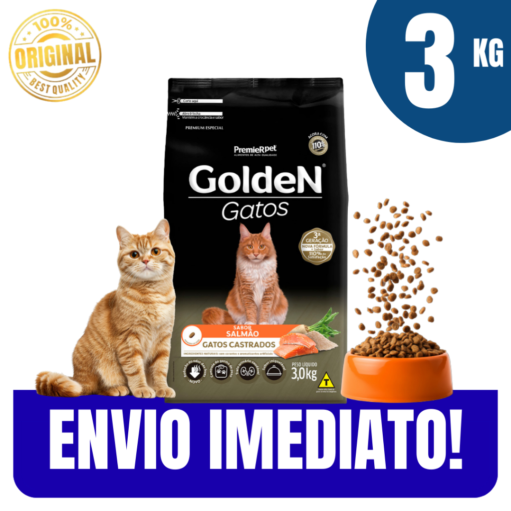 ração p/ Gatos Castrados 3kg Sabor Salmão Redução de Odor das Fezes Novo - Envio Imediato