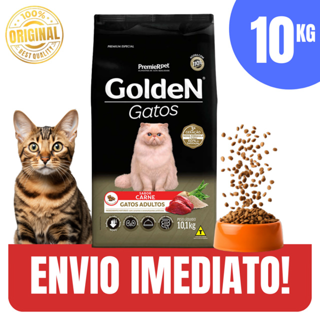 Ração p/gatos Golden Gatos Adultos Carne 10,1kg Sem Corantes Redução de Odor Fezes - Envio Imediato