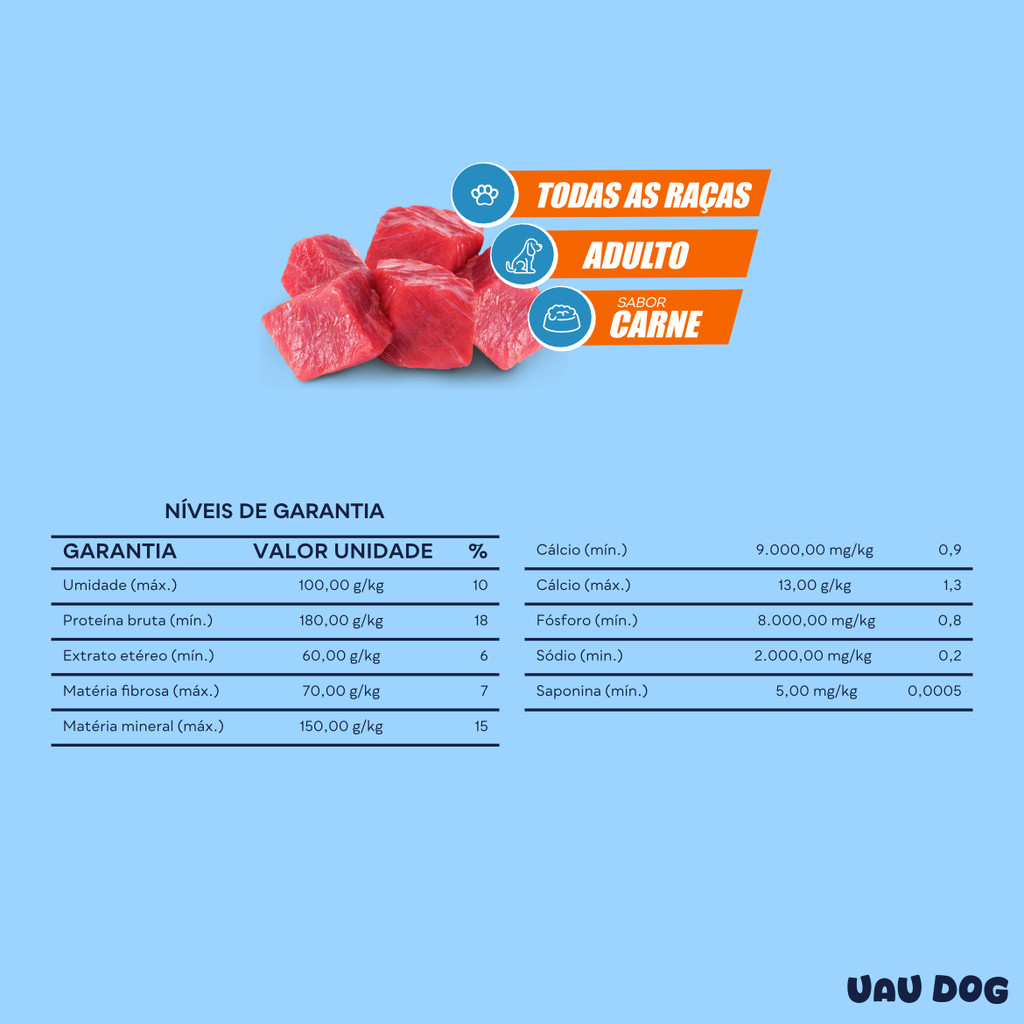 RAÇÃO PARA CÃES ADULTOS TRADICIONAL – UAU UAU DOG 15 KG VENDA LIMITADA A SOMENTE 2 SACOS POR PEDIDO - (Shopee não permite envios superior a 30kg) caso queira compra mais quantidades, faça outro pedido com a quantidade excedente. Alimentação completa, sabor agradável e energia para a rotina do seu cão adulto. A Ração Uau Uau Dog Adultos Tradicional 15kg foi desenvolvida para oferecer nutrição diária equilibrada, combinando proteínas, vitaminas e minerais essenciais para a saúde e bem-estar dos cães adultos. É uma opção econômica, saborosa e funcional, ideal para quem busca custo-benefício sem abrir mão da qualidade. Com textura crocante, auxilia na mastigação e contribui para a higiene bucal, enquanto sua fórmula balanceada mantém o cão disposto, saudável e satisfeito ao longo do dia. Indicado para cães de todos os portes, garantindo energia e vitalidade para a rotina. Principais Benefícios: • Nutrição Balanceada: vitaminas e minerais para saúde geral. • Excelente Custo-Benefício: ideal para uso diário. • Textura Crocante: ajuda na limpeza dos dentes. • Boa Aceitação: sabor tradicional que agrada facilmente. • Para Todos os Portes: atende cães pequenos, médios e grandes. Modo de Uso: Ofereça diariamente conforme o peso e nível de atividade do cão. Mantenha água fresca sempre disponível. Diferenciais do Produto: • Fórmula completa para cães adultos • Grãos crocantes e fáceis de mastigar • Alimentação básica e funcional • Embalagem econômica de 15 kg • Ideal para uso contínuo na rotina Perguntas Frequentes: -É uma ração completa? Sim. Possui os nutrientes necessários para cães adultos. -Serve para cães de todos os portes? Sim. A fórmula atende cães pequenos, médios e grandes. -Ajuda na saúde bucal? Sim. A textura crocante auxilia na redução do tártaro. -Pode ser usada todos os dias? Pode. É indicada para alimentação diária contínua. POR QUE COMPRAR COM A UAI MAGAZINE? Mais de 7 anos no mercado, +300mil pedidos entregues, milhares de clientes satisfeitos e envio rápido para todo o Brasil. Aguardamos a sua compra. UAI MAGAZINE – O JEITO MINEIRO DE COMPRAR BEM.