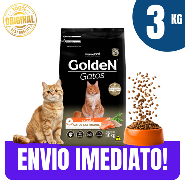 | Ração para Gatos Castrados Sabor Salmão 3kg Alimento Premium Especi... este produto | R$ 67,99 | 55% | 4.6/5 | 7 |