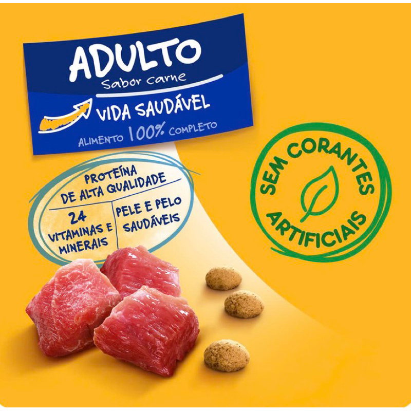 - Indicada para cães;- Nutrição essencial sabor carne para cães adultos;- Alimento premium 100% completo e balanceado;- Sem corantes artificiais presentes na ração;- Nutrição essencial com 23 vitaminas e minerais;- Proteína de alta qualidade para manutenção de músculos fortes;- Com ômega 6 para pele e pelo saudáveis de seu cachorro;- Vida saudável: nível ideal de ingredientes para qualidade de vida;- Com novos pedaços;- Disponível em embalagens de 900g IdadeAdulto LinhaPremium PetCachorros Porte de RaçaMédio e Grande TransgênicoSim Sabor CompletoCarne Formato AlimentoGrãos Raça CachorroTodas Sabor PrincipalCarne Tipo AlimentoComum CoranteNatural TipoRação seca Indicação VeterináriaAlimentação Diária IndicaçãoCães Adultos Raças Médias e Grandes