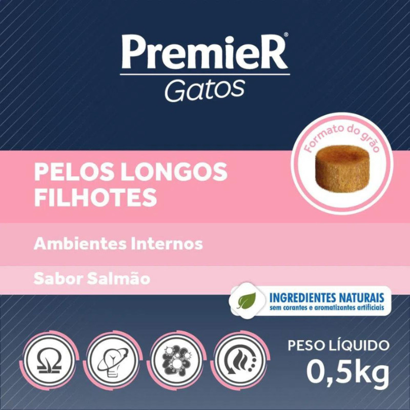 Ração PremieR Ambientes Internos gatos filhotes de pelo longo salmão 500gr
