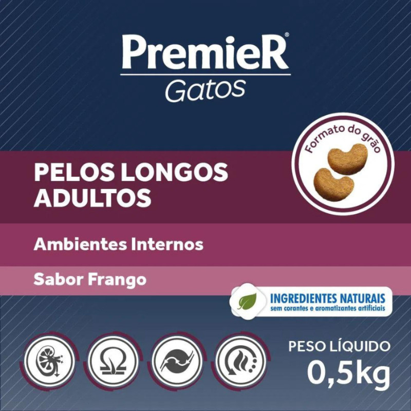 Ração PremieR Ambientes Internos gatos pelos longos adultos frango 500gr