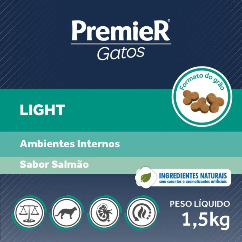 Ração PremieR Ambientes Internos light gatos adultos salmão 1,5kg