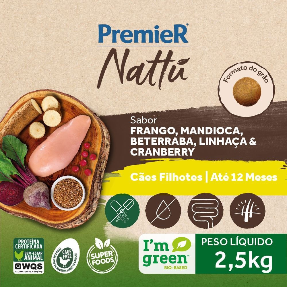 Ração Premier Nattu cachorros filhotes frango, mandioca e beterraba 2,5kg