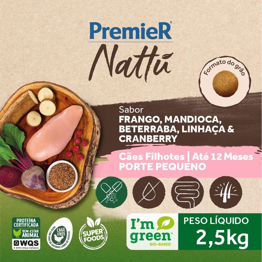 Ração PremieR Nattu cachorros filhotes raças pequenas frango, mandioca e linhaça 2,5kg