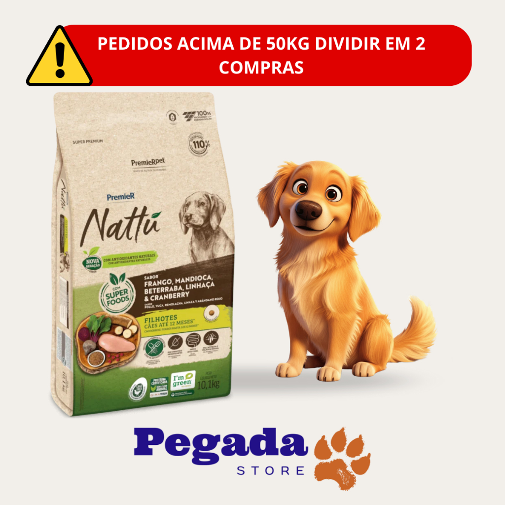 RAÇÃO PREMIER NATTU FILHOTE RAÇA MEDIA E GRANDE MANDIOCA 10KG