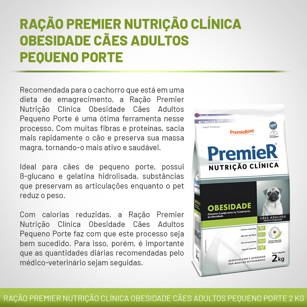 | Ração Premier Nutrição Clínica Obesidade Por/Peq Adultos 2kg este produto | R$ 106,58 | 15% | 5.0/5 | 3 |