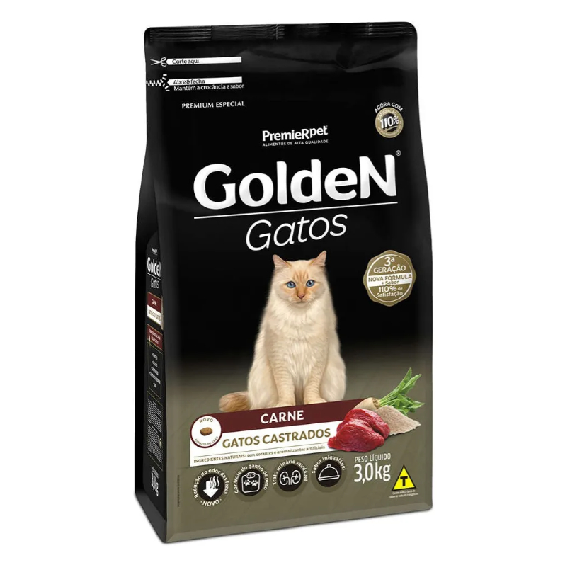 Ração PremieR Pet GoldeN Carne para Gatos Castrados 3kg