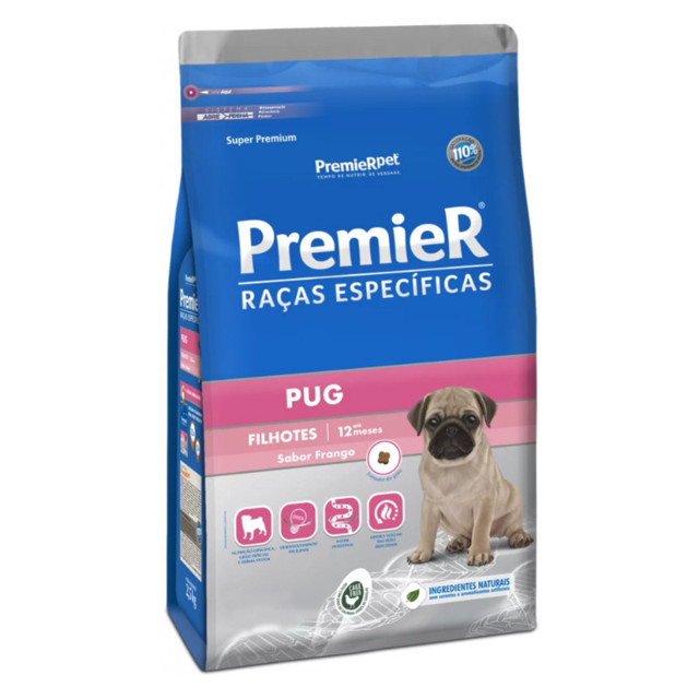 | Ração PremieR Raças Específicas para Pug Filhote Porte Pequeno sabo... este produto | R$ 117,78 | 5% | 5.0/5 | — |