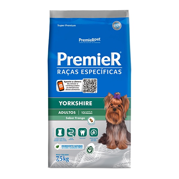 Cada raça possui suas particularidades e se beneficia de cuidados especiais. Pensando nestas necessidades a PremieRpet® criou PremieRr Raças Específicas, a primeira linha mundial de nutrição específica para raças. Desenvolvida com ingredientes nobres e alta tecnologia, PremieR Raças Específicas oferece benefícios exclusivos que visam minimizar os principais problemas de saúde das raças e auxiliar para o pleno desenvolvimento de suas características típicas desejáveis. PremieR Yorkshire foi formulada a partir deste conceito e oferece tudo o que esta raça precisa para manter sua saúde e beleza. Oferece ainda redução do volume e odor de fezes minimizando possíveis inconvenientes de uma convivência tão próxima entre os cães e seus proprietários.
