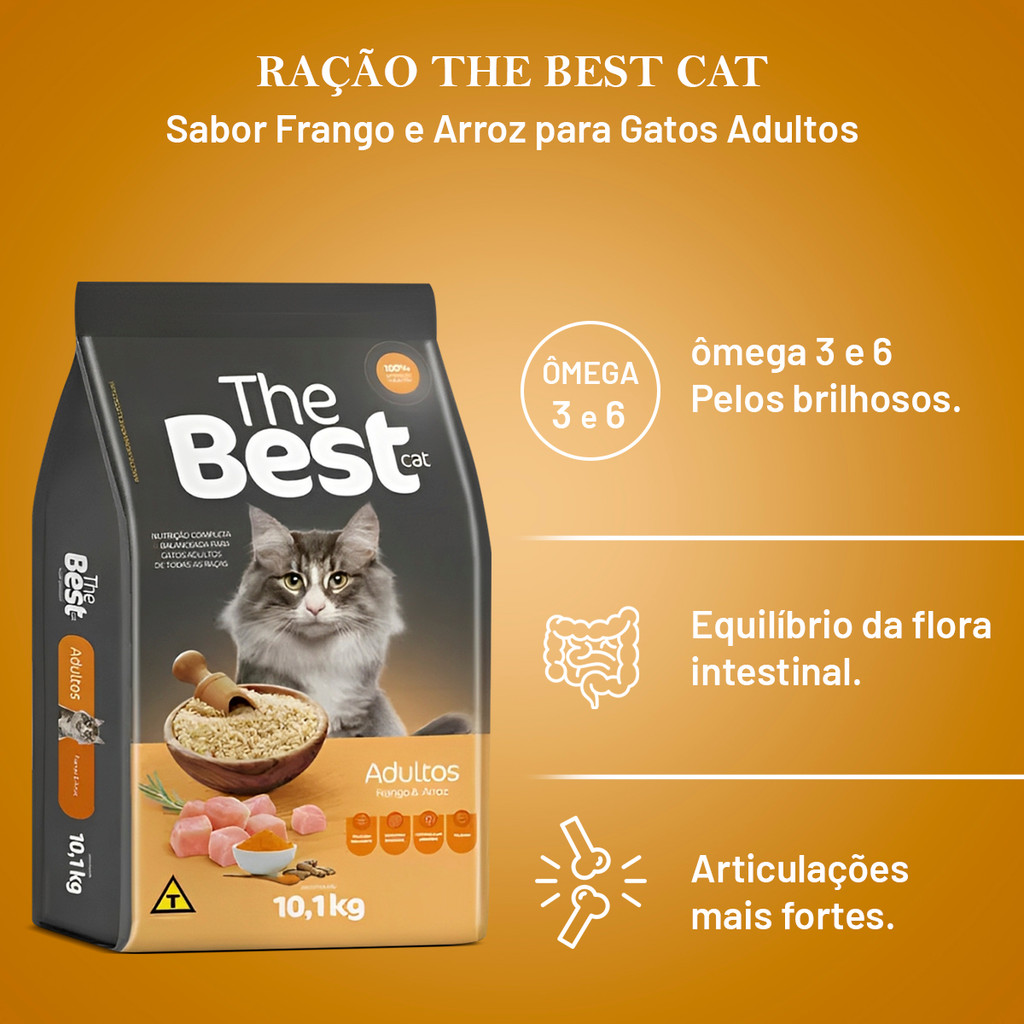 Ração Premium The Best Cat para Gatos Adultos Sabor Frango e Arroz –10,1kg