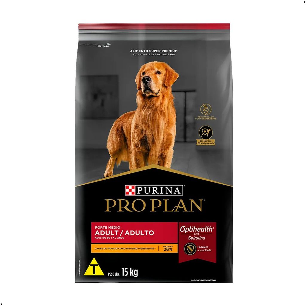 Ração Pro Plan 15Kg Alimento Super Premium Cães Adultos Porte Médio Sabor Frango Purina Cachorro