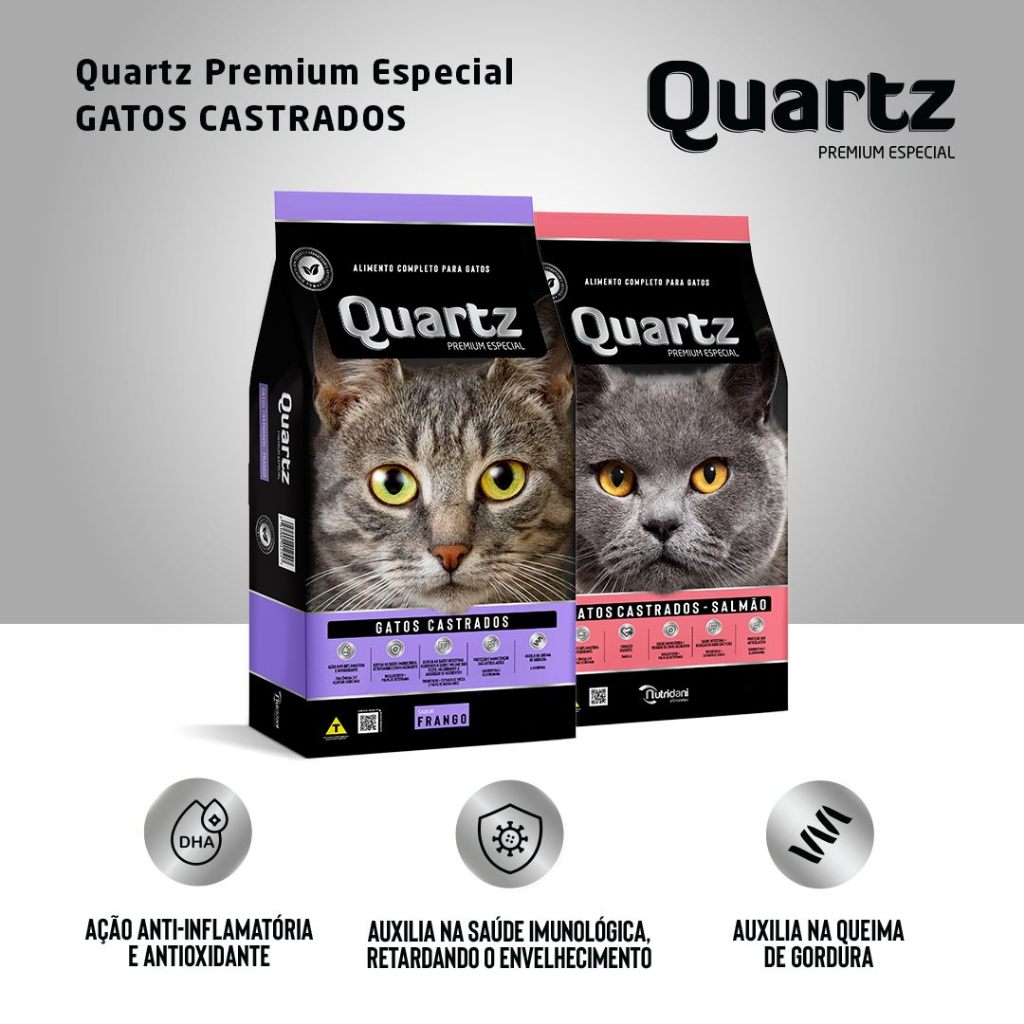 | Ração Quartz Gatos Castrados Frango 10,1Kg este produto | R$ 121,90 | 6% | 5.0/5 | — |