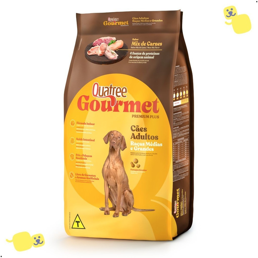 Ração Quatree Gourmet 15Kg Cães Adultos Médios e Grandes Alimento Mix Carnes Premium Cachorro Pet