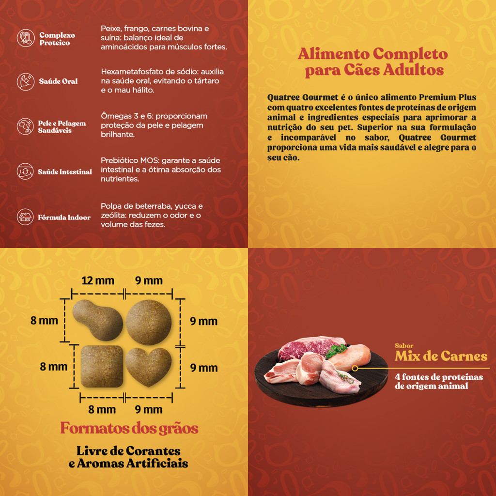 Ração Quatree Gourmet Cães Adultos Raças Pequenas - 1Kg