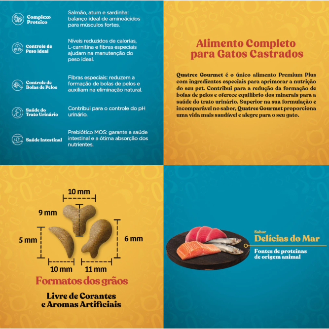 Ração Quatree Gourmet Gatos Castrados Delícias do Mar 10,1Kg