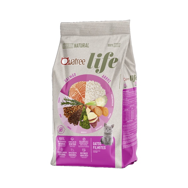 Ração Quatree para Gatos Life Filhotes 10,1kg - Indicado para gatos; - Com ingredientes criteriosamente selecionados; - Livre de transgênicos, corantes e aromatizantes artificiais; - Garante uma dieta equilibrada e natural. Alimente o seu felino em crescimento com o que há de melhor na categoria de alimentos Premium Especiais - a Ração Quatree Life para Gatos Filhotes. Esta ração foi meticulosamente elaborada com ingredientes criteriosamente selecionados, garantindo uma dieta equilibrada e natural para o seu pequeno gato. O compromisso da Quatree com a qualidade é evidente na ausência de ingredientes transgênicos, corantes e aromatizantes artificiais. Ao optar pela Ração Quatree Life, você estará escolhendo um alimento verdadeiramente saudável para o seu gatinho, permitindo-lhe saborear a autenticidade e o frescor dos ingredientes naturais. Além disso, a Ração Quatree Life para filhotes utiliza conservantes naturais, elevando ainda mais o nível de saúde e segurança do alimento que seu pet vai consumir. Esta ração não apenas atende às necessidades nutricionais do seu gato, mas também contribui para a sua saúde e longevidade em geral.