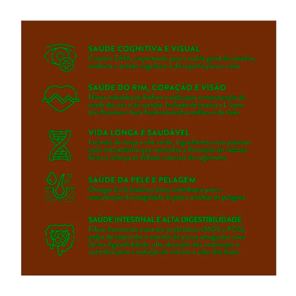 Ração Quatree Supreme Cães Sênior +7 Raças Médias e Grande Cordeiro e Frango - 15kg - Indicado para cães; - Para cães de raças médias e grandes; - Saúde da pele e pelagem; - Melhora a flora intestinal; - Alta digestibilidade. Ração Quatree Supreme Sênior +7 Raças Médias e Grandes é um alimento Super Premium formulado com conservantes 100% naturais e livre de transgênicos, garantindo fácil digestão e absorção dos nutrientes. A combinação de proteínas selecionadas e ingredientes naturais e funcionais garante mais saúde e longevidade para o seu cão. Quatree Supreme Sênior +7 Raças Médias e Grandes contém DHA importante para a saúde do cérebro e melhora do estado cognitivo. Além disso, possui níveis reduzidos de sódio e fósforo para a manutenção dos rins e do coração, auxilia no equilíbrio da flora intestinal com as fibras naturais prebióticas (MOS e FOS), polpa de beterraba e extrato de yucca que asseguram ótima digestibilidade. Sem contar que é ótimo para a pele e pelagem pois contém Ômega 3 e 6, além da maçã e chá verde com potente ação antioxidante que reforça as defesas naturais do organismo. Modo de usar Fornecer diariamente o alimento Quatree Supreme Sênior +7 Raças Médias e Grandes dividido em duas porções. As quantidades indicadas na tabela acima são uma referência, podendo variar conforme a raça, idade e atividade do cão ou de acordo com a orientação do médico veterinário. Um copo de 250ml equivale a aproximadamente 115g de Quatree Supreme Sênior +7 Raças Médias e Grandes. Quantidade Diária Peso Atividade Física Moderada Atividade Física Alta 10kg 150g 180g 15kg 205g 245g 20kg 255g 300g 25kg 300g 360g 30kg 345g 410g 35kg 392g 460g 40kg 430g 510g 45kg 470g 560g +50kg 510g 605g Composição Farinha de vísceras de frango, proteína isolada de suíno, farinha de carne e ossos de ovino, ovo integral desidratado, arroz quebrado, sorgo integral moído, farinha de batata doce, levedura de cerveja, farinha de peixe, polpa de beterraba (mín. 2,0%), gordura de frango, gordura suína, semente de linhaça, lignocelulose, inulina (FOS) (mín. 0,15%), mananoligossacarídeo (MOS) (mín. 0,1%), cloreto de sódio (sal comum), farinha de algas (DHA), cloreto de potássio, sulfato de glucosamina, sulfato de condroitina, taurina, metionina, hexametafosfato de sódio (mín. 0,3%), zeólita, L-carnitina, extrato de yucca (mín. 0,05%), extrato de maçã (mín. 0,05%), extrato de chá verde (mín. 0,01%), glucanos, extrato de alecrim, tocoferol, ácido propiônico, hidrolisado de fígado de frango e suíno, vitaminas (A, D3, E, B1, B2, B6, B12, K3, C, niacina, biotina, cloreto de colina, ácido fólico, ácido pantotênico), minerais (iodato de cálcio, sulfato de ferro, sulfato de zinco, sulfato de cobre, selenito de sódio, sulfato de manganês), minerais quelatados (manganês, selênio e zinco).