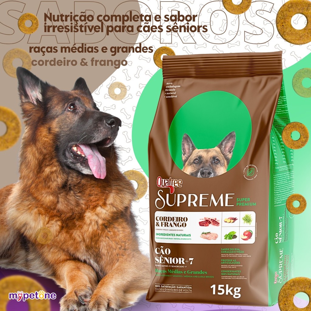 | Ração Quatree Supreme Cães Sênior +7 Raças Médias e Grandes - 15Kg este produto | R$ 242,16 | 35% | 4.9/5 | 4 |