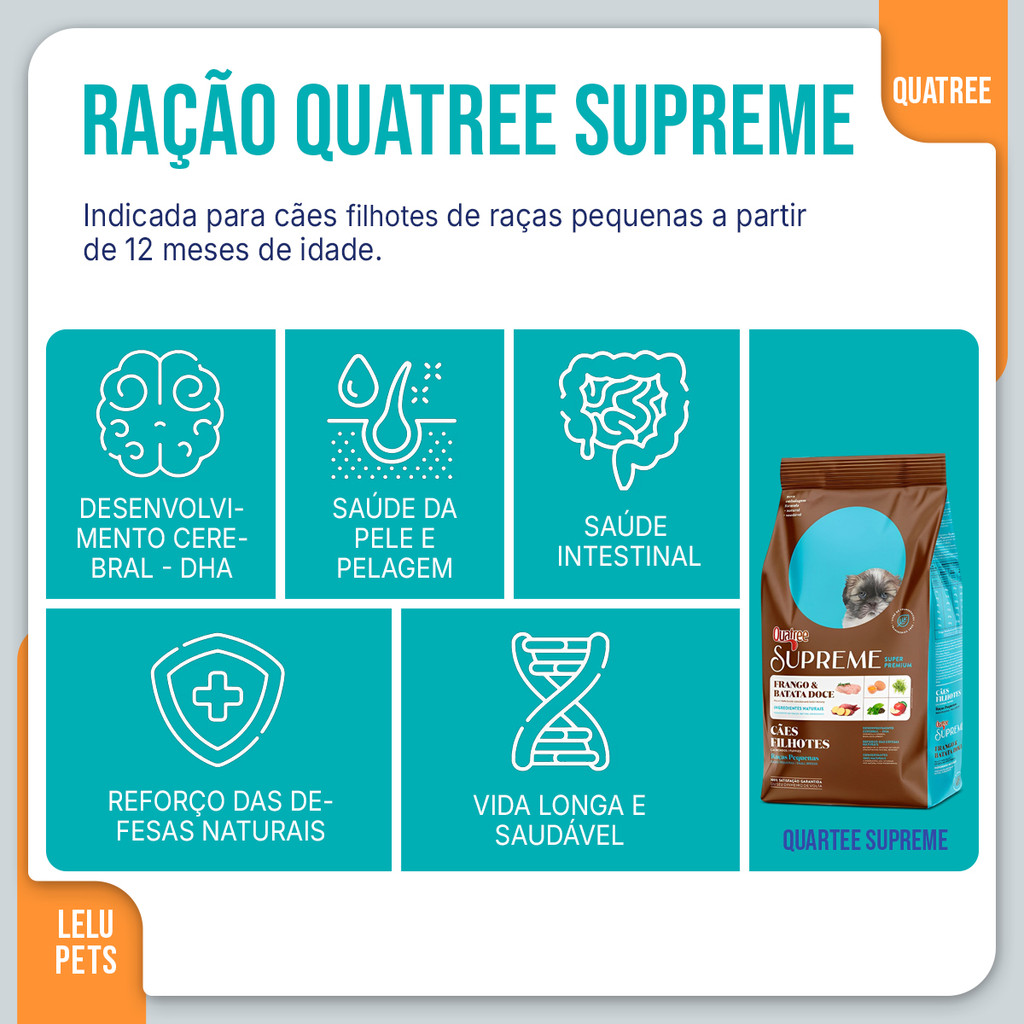 Ração Quatree Supreme Frango e Batata Doce Cães Filhotes Raças Pequenas 10kg