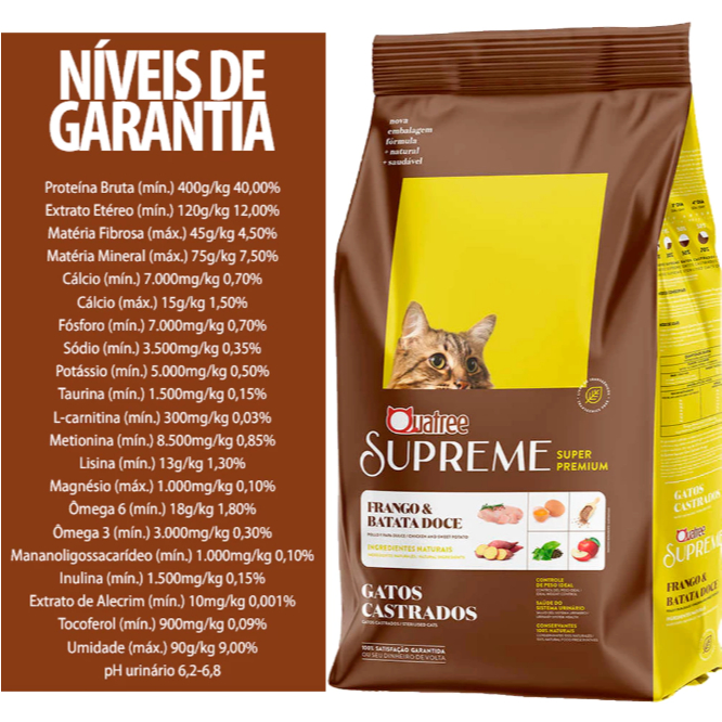 Ração Quatree Supreme Gatos Castrados Sabor Frango e Batata Doce 10,1Kg