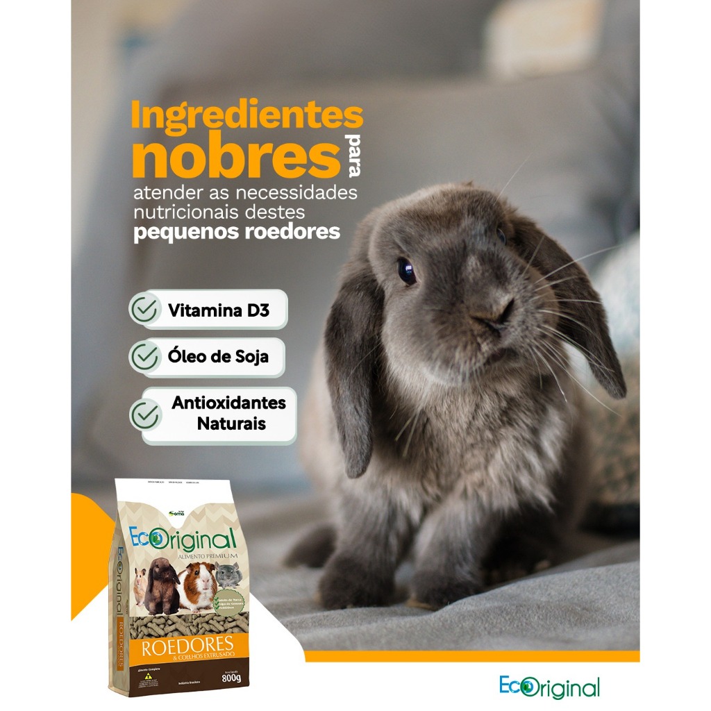 Ração Roedores Ecoriginal Extrusado 800g - Para Roedores Mini-Coelhos Porquinho da índia