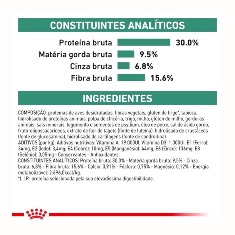 Ração Royal Canin Veterinary Diet Satiety Small Dog para Cães Adultos de Pequeno Porte 7,5kg Pet: Cães; Idade: Adultos, Idosos; Linha: Veterinary Diet; Tipo de Ração: Super Premium; Porte de Raça: Pequenas, até 10kg; Tamanho de grão: Grãos Médios; Corante: Sem corante; Transgênico: Com transgênico; Código de barras: 7896181218357. A Ração Royal Canin Satiety Small Dog é especialmente formulada para cães adultos de pequeno porte que precisam de uma ajuda eficaz no controle de peso. Ideal para raças de até 10 kg, essa ração não apenas auxilia na perda de peso, mas também é pensada para prolongar a sensação de saciedade, reduzindo a fome e o apetite. Com uma combinação precisa de proteínas de alta qualidade e fibras, o alimento promove o controle da ingestão calórica enquanto ainda preserva a massa muscular, essencial para a saúde e energia dos pets ao longo do processo de emagrecimento. Controle de Peso com Saciedade Prolongada A principal característica da Royal Canin Satiety Small Dog é seu alto poder saciogênico, pensado para atender cães que sentem fome com frequência. A fórmula conta com uma mistura especial de fibras, desenvolvida para retardar o esvaziamento gástrico, proporcionando uma sensação de satisfação por mais tempo. Isso significa que os cães tendem a comer menos ao longo do dia, reduzindo o consumo espontâneo de alimentos e, consequentemente, as calorias ingeridas. Além disso, a presença de proteínas de alta digestibilidade ajuda a manter a massa muscular mesmo durante a restrição calórica, essencial para que os cães continuem com uma estrutura corporal forte e saudável. Saúde Dental Incorporada à Nutrição Além do controle de peso, a Ração Royal Canin Satiety também inclui componentes específicos para a saúde oral dos cães. Os nutrientes selecionados na formulação contribuem para a manutenção da higiene bucal e ajudam a prevenir o acúmulo de placa bacteriana e o mau hálito. *Este produto é uma fórmula exclusivamente veterinária. Consulte o seu médico veterinário para saber se é indicado para o seu pet. Qual o sabor da Ração Royal Canin Veterinary Diet Satiety Small Dog? A ração Royal Canin é um alimento Super Premium que não possui um sabor especifico, uma vez que em sua composição possui um mix de carnes adequados a formulação e nutrição específica de cada raça e porte e suas necessidades nutricionais diárias, mas possui uma alta palatabilidade e aroma agradável tanto para gatos quanto para cachorros. Por que a Ração Royal Canin é um alimento Super Premium? Os alimentos Super Premium apresentam um nível nutricional mais elevado, e atendem os requisitos mínimos estabelecidos pelo Conselho de Nutrição Animal, os níveis nutricionais devem estar em equilíbrio entre os níveis mínimos e máximos apresentados pela AAFCO (Association of American Feed Control Officials). A Ração Royal Canin Veterinary Diet Satiety Small Dog para Cachorros Adultos de Pequeno Porte foi produzida atendendo todos os requisitos. Esses níveis são determinados pelas pesquisas, que buscam ótimas condições de pelagem, desenvolvimento de musculatura e, principalmente, otimização de desempenho na reprodução e no sistema imunológico. Composição Farinha de vísceras de aves, casca de ervilha, lignocelulose, glúten de trigo, farinha de mandioca, milho integral moído*, farelo de glúten de milho*, polpa de chicória seca, gordura de frango, quirera de arroz, casca de psyllium, cloreto de sódio (sal comum), óleo de peixe refinado, cloreto de potássio, levedura seca de cervejaria, carbonato de cálcio, hidrocloreto de glicosamina, sulfato de condroitina, butirato de sódio, fruto-oligossacarídeos, sorbato de potássio, tripolifosfato de sódio, extrato de marigold, vitaminas (A, C, E, D3, B1, B2, B6, B12, PP), ácido pantotênico, biotina, ácido fólico, cloreto de colina, sulfato de ferro, sulfato de cobre, óxido de manganês, óxido de magnésio, óxido de zinco, iodato de cálcio, levedura enriquecida com selênio, cobre aminoácido quelato, manganês aminoácido quelato, zinco aminoácido quelato, tirosina, taurina, L-lisina, L-carnitina, DL-metionina, palatabilizante à base de fígado de frango, antioxidante (BHA).