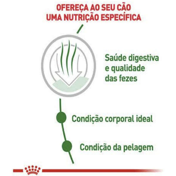 - Indicado para cães adultos; - Auxilia na saúde digestiva e na redução do odor e volume das fezes; - Ajuda na manutenção da condição corporal ideal; - Atende a necessidade energética reduzida de cães de pequeno porte que vivem em ambientes internos; - Ajuda a manter uma pele e pelagem saudáveis; A Ração Royal Canin Mini Indoor Adult para Cães Adultos de Raças Pequenas com 10 Meses ou mais é completa super premium indicada para cães adultos de porte pequeno que vivem em ambientes internos, a partir dos 10 meses de idade. Auxilia na saúde digestiva e na redução do odor e volume das fezes graças a proteínas altamente digestíveis, ao teor apropriado de fibras e as fontes de carboidratos de elevada qualidade. Ajuda na manutenção da condição corporal ideal graças a um adaptado conteúdo calórico, que atende a necessidade energética reduzida de cães de pequeno porte que vivem em ambientes internos. Esta fórmula contém L-carnitina. Esta fórmula contém nutrientes que ajudam a manter uma pele e pelagem saudáveis. Composição Farinha de vísceras de aves, quirera de arroz, milho integral moído*, farinha de proteína isolada de suíno, gordura de frango, gordura suína, polpa de beterraba, óleo de soja refinado*, casca de ervilha, óleo de peixe refinado, levedura seca de cervejaria, zeolita, glúten de trigo, polifenóis de uva e chá verde 10%, fruto-oligossacarídeos, cloreto de sódio (sal comum), carbonato de cálcio, cloreto de potássio, tripolifosfato de sódio (3500 mg/Kg mín.), sulfato de cálcio, fosfato bicálcico, fosfato monocálcico, vitaminas (A, C, E, D3, B1, B2, B6, B12, PP), ácido pantotênico, biotina, ácido fólico, cloreto de colina, óxido de magnésio, sulfato de ferro, sulfato de cobre, óxido de manganês, óxido de zinco, iodato de cálcio, selenito de sódio, fígado de frango, tirosina, DL-metionina, L-lisina, L-carnitina, taurina, antioxidante (BHA). *milho integral moído geneticamente modificado por Bacillus thurigiensis e Streptomyces viridochromogenes