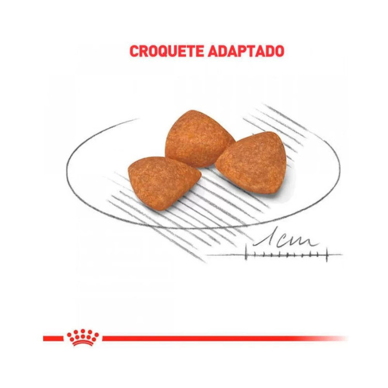 Ração Royal Canin X-Small Ageing 12+ para Cães Idosos de Porte Mini 1kg Pet: Cães; Idade: Idosos; Indicação: Cães acima de 12 anos; Tipo de Ração: Super Premium; Porte: Mini (até 4kg); Tamanho de grão: mini; Corante: Sem corante; Suporte ao Envelhecimento Saudável; Contém fibras balanceadas, como psyllium, e proteínas de alta digestibilidade, essenciais para a qualidade das fezes e o conforto digestivo. Inclui antioxidantes e nutrientes específicos que auxiliam na manutenção de uma boa função cardíaca, atendendo às necessidades de cães idosos com mais de 12 anos. Croquetes de tamanho muito pequeno adaptado para o porte; Código de barras: 7896181215653. Alimento completo seco para cães maduros de porte miniatura (peso até 4 kg) - A partir de 12 anos de idade. Desenvolvido para auxiliar o envelhecimento saudável dos cães de porte muito pequeno. Contém EPA, DHA e um exclusivo complexo de antioxidantes para ajudar a neutralizar os radicais livres. Os cães de porte muito pequeno são propensos à constipação intestinal. Um fornecimento balanceado de fibras (incluindo psyllium) favorece o trânsito intestinal e, em conjunto com proteínas de elevada digestibilidade, contribui para a boa qualidade das fezes. Formulado com nutrientes-chave e antioxidantes que auxiliam a manutenção da boa função cardíaca dos cães muito pequenos, com mais de 12 anos de idade. Este croquete de tamanho pequeno foi desenvolvido para a perfeita adaptação às mandíbulas miniaturas dos cães adultos com peso até 4 quilos. Sua fórmula exclusiva ajuda a estimular o apetite exigente dos cães de raças muito pequenas. Qual o sabor da Ração Royal Canin X-Small Ageing 12+? A ração Royal Canin é um alimento Super Premium que não possui um sabor especifico, uma vez que em sua composição possui um mix de carnes adequados a formulação e nutrição específica de cada raça e porte e suas necessidades nutricionais diárias, mas possui uma alta palatabilidade e aroma agradável tanto para gatos quanto para cachorros. Por que a Ração Royal Canin X-Small Ageing é Super Premium? Os alimentos Super Premium apresentam um nível nutricional mais elevado, e atendem os requisitos mínimos estabelecidos pelo Conselho de Nutrição Animal, os níveis nutricionais devem estar em equilíbrio entre os níveis mínimos e máximos apresentados pela AAFCO (Association of American Feed Control Officials). A Ração Royal Canin X-Small Ageing 12+ para Cachorros Idosos Mini foi produzida atendendo todos os requisitos. Esses níveis são determinados pelas pesquisas, que buscam ótimas condições de pelagem, desenvolvimento de musculatura e, principalmente, otimização de performance na reprodução e no sistema imunológico. Composição Quirera de arroz, milho integral moído*, farinha de vísceras de aves, farelo de glúten de milho*, gordura suína, gordura de frango, farinha de torresmo, polpa de chicória seca, óleo de peixe refinado, óleo de soja refinado*, glúten de trigo, casca de psyllium (1%), tomate desidratado, óleo de borragem, cloreto de potássio, carbonato de cálcio, fosfato monocálcico, óxido de magnésio, extrato de marigold, fruto-oligossacarídeos, parede celular de levedura (MOS), tripolifosfato de sódio, extrato de chá verde, vitaminas (A, C, D3, E, B1, B2, B6, B12, PP), ácido pantotênico, biotina, ácido fólico, cloreto de colina, sorbato de potássio, sulfato de cálcio, sulfato de ferro, sulfato de cobre, óxido de zinco, óxido de manganês, iodato de cálcio, levedura enriquecida com selênio, zinco aminoácido quelato, manganês aminoácido quelato, cobre aminoácido quelato, taurina, L-arginina, tirosina, DL-metionina, L-lisina, L-carnitina, palatabilizante à base de fígado de frango, antioxidante (BHA).
