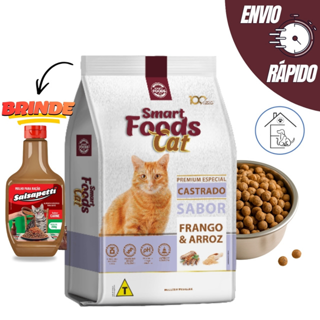 RAÇÃO SMART FOODS CAT ALIMENTO GATOS CASTRADOS 10,1KG FRANGO & ARROZ + MOLHO CREMOSO SALSAPETTI 250G